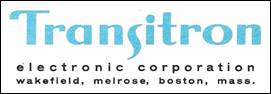 Transitron’s first commercially successful product was the gold bonded germanium diode, which sold in the hundreds of millions of units throughout the 1950s and 1960s in such applications as computers, high temperature magnetic amplifiers, military equipment and business machines. Shown above are two classic Transitron germanium diodes; note the “T” on the smaller 1N34 glass bodied device and the “Transitron” id on the larger plastic bodied 1N81A. Shown below is a Transitron Corporate logo from the early 1960s.