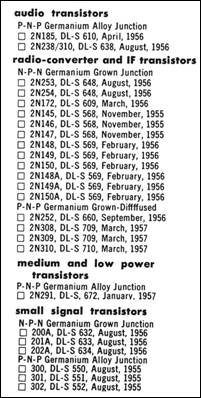 radio transistors included the 2N145, 2N146, 2N147, 2N148, 2N149, 2N150, 2N185,