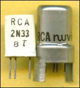 of the last major successful tube technologies. Shown on the right is an RCA 6CW4 Nuvistor (next to the 2N33 transistor for size