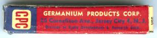 NOTES Germanium Products Corporation was a unique privately held company that was responsible for producing some of the first transistors ever available for commercial sale. The parent company to GPC, Radio Development and Research (RDR) created the GPC division in 1952 and began placing ads announcing the availability of its new germanium grown junction transistors. GPC was one of only a few companies (total of 30 or so) that purchased an initial license from Western Electric to manufacture transistors. These first GPC transistors were quite crude, black epoxy units. Some of these were used in the first transistorized or hybrid hearing aids in 1952/1953. The 2N98A unit shown above is from the late 1950s (probably 1957). It is the same basic technology (germanium grown junction) as the first GPC transistors. At some point in the late 1950s, GPC was sold to another semiconductor manufacturer (Bogue Electric) which continued to sell the 2N98A for several years. |
