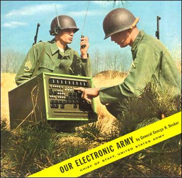 Beginning in Fiscal Year 1952, the Signal Corps sponsored transistor development contracts with U.S. companies for specific military procurement requirements. These Sig C programs were initially known as Industrial Preparedness Measures program, and later as Production Engineering Measures (PEM). Two technical papers co-authored by Bernie in the 1960s (see publication references 6 and 14) provide excellent coverage of this pioneering work, and are illustrative of the important transistor technologies developed during this timeframe. For example, FY-1954 contracts included the first production germanium power transistors with the inclusion of the Clevite 2N297 shown above. FY-1956 PEM contracts covered a much expanded list of transistor types including the Sylvania 2N625 computer core driver and the early Raytheon high power 2N1657 silicon audio transistor (see above). These types of devices found immediate use in military applications, as noted in Bernie’s Sig C technical papers. Specifically, the Helmet Radio (Army model AN/PRC-34, -36) and the MOBIDIC Mobile Digital Computer (Army model AN/MSQ-20) utilized devices developed under the FY-1956 PEM program. Shown at right is a section of the Spring 1961 RCA Electronic Age magazine illustrating field tests of this equipment at the Signal Corps Fort Monmouth facility. The soldier at right is exercising the MOBIDIC computer and the soldier at left is working with the helmet radio technology. Use the links above for more information on these historic Sig C transistors.