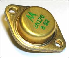 HISTORIC NOTES Motorola established a transistor research operation in Phoenix in 1949, only one year after the first public announcement of the transistor by Bell Labs. At that time, Motorola was a major manufacturer of communications, military and consumer electronics, and the intent was to develop in-house expertise in this promising new technology. Large scale transistor production began in 1956, when the 2N176 germanium power transistor was introduced. By January 1957, over 1,000,000 of these devices had been manufactured by Motorola – this represented 50% of all power transistors that had been made by all other companies at that time. The primary market for the 2N176 was in automobile radios. These first “transistor-powered” radios were really hybrid technology, meaning that both vacuum tubes and transistors were used. Initial cost for the 2N176 was as much as $26 per unit, but Motorola’s high volume and manufacturing prowess dropped the cost to $2 each by 1960. The huge sales success of the 2N176 established Motorola as a major semiconductor manufacturer, and this historic transistor was still in production well into the 1960s, when silicon technology began to supercede germanium for most applications. As shown above, the 2N176 used the now standard TO-3 case style, pioneered by Motorola in 1955.