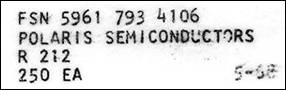 HISTORIC NOTES By the mid 1950s, transistor technology had matured to the extent that the military was interested in utilizing these unique devices in “mission-critical” defense programs. One of the first documented large scale military uses of transistors was the Polaris missile program, which was initiated in 1956 when the Navy began funding a program to develop a ballistic missile that could be launched from a submerged submarine. The inertial guidance computer carried onboard each Polaris missile was developed at the MIT Instrumentation Laboratory, and these first versions used discrete transistor components, such as the R212, while later versions used integrated circuits as this technology became available. Hundreds of Polaris missiles were produced until 1972, when the Poseidon missile was deployed as a replacement. Texas Instruments was a major supplier of semiconductors for the Polaris program, beginning with germanium transistors in the 1950s and ICs in the 1960s. There is a wealth of informative literature documenting the Polaris guidance computer program (and the related Apollo program) authored by Eldon C. Hall, who managed this work at MIT. (See “Journey to the Moon: The History of the Apollo Guidance Computer”, by Eldon C. Hall, published in 1996 by AIAA). |