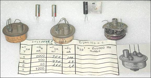 I have never seen an Amperex 2N115. Again, this item was not very competitive by 1956 when all the other manufacturers had come out with higher power TO-3 types and may explain it's apparently low sales. In addition, the materials and construction costs of this very involved item had to have made it a very expensive power transistor to make and sell at the time. As can be seen in the cut-out sample, this had three layers of steel housing, three glass relief insulators, a large insulated bottom layer, and the top-hat heat sink, which is made with some kind of hard resin inside with a copper heat tab. Not really sure how effective this all was to it's over-all dissipation rating. No matter, it was not inexpensive. Amperex did not really get into the power transistor market in the U.S. after this, at least in the 50's. Mullard/Valvo did move forward with their own TO-3 power types later.