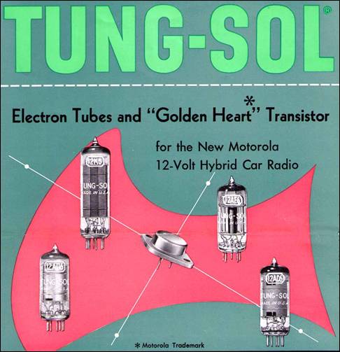 Finally, as shown in the May 1956 advertisement above, Tung-Sol announced their version of a Power Transistor device for use in the expected "Hybrid" car radio marketplace. (This ad continues onto the top paragraph on the next page).