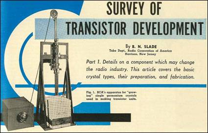[3] “Survey of Transistor Development, Parts 1, 2 and 3”, Radio and Television News, Sept, Oct and Nov, 1952. (This series by Bob is a very thorough treatment of 1952 transistor technology).