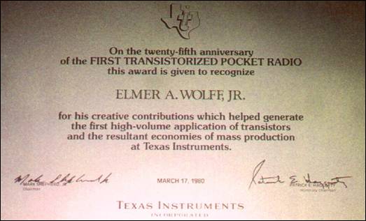 are two photos relating to various aspects of Mr. Wolff’s early transistor