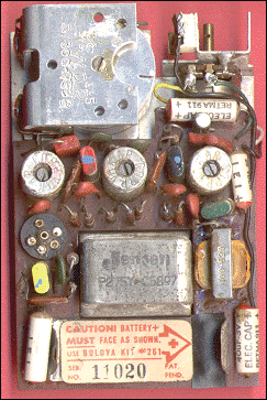TR1 chassis from the mid 1950s. The four color-coded TI transistors can be